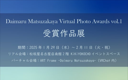 大丸松坂屋百貨店(以下、当社)は、昨年秋に当社として初めて開催したバーチャルフォトアワード「Daimaru Matsuzakaya Virtual Photo Awards vol.1」の受賞作品を決定し、2025年1月29日(水)から2月11日(火・祝)までの2週間、松坂屋名古屋店南館2階 KiKiYOKOCHOイベントスペースにて、受賞作品展を開催いたします。