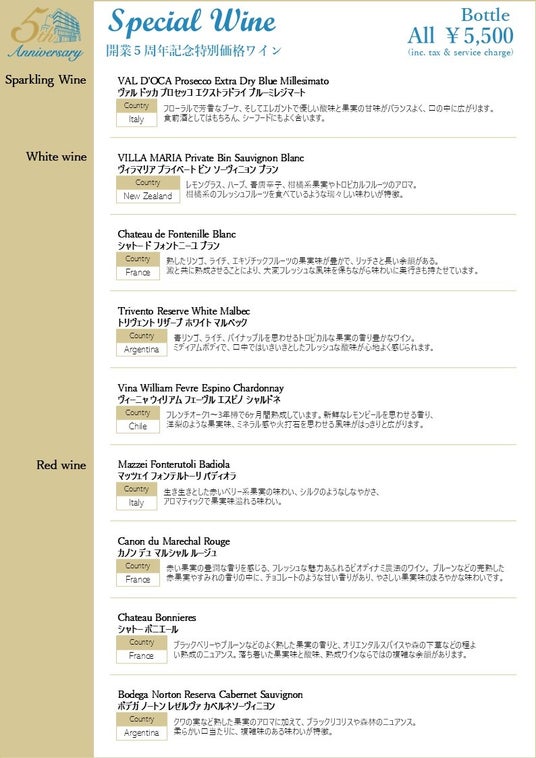 5周年の節目に心からのありがとうを込めて特別なカクテルをご用意しました。
