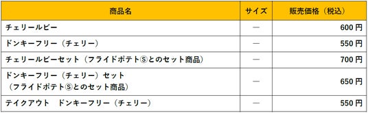これと同時に、フライドポテトⓈを一緒に愉しめる「チェリールビーセット」と「ドンキーフリー(チェリー)セット」も登場します。