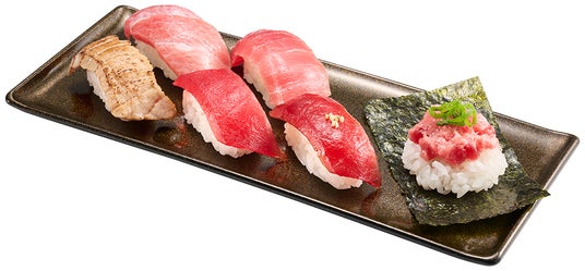 ※内容:大とろ、中とろ、ねぎとろ包み、中とろ焦がし醤油、赤身、漬け赤身(煮切り醤油)