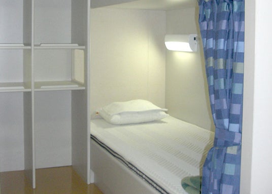 お一人様1ベッド。下段と上段が互い違いの入口になっているため、プライベート空間も確保