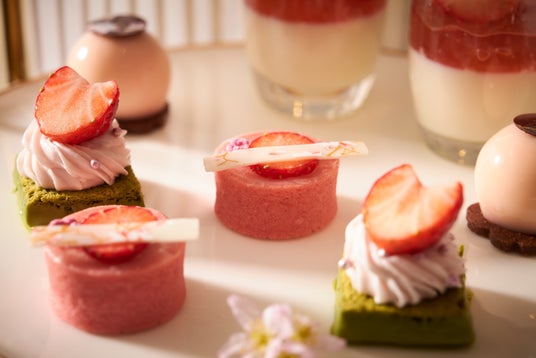 さらに、桜シロップとストロベリーティーを合わせたウェルカムドリンク「ピンクベリーブロッサム」や、土日・祝日限定の「桜プロフィットロールパフェ」もご用意しております。ロビーラウンジの居心地のよい空間で、春の訪れを感じる優雅なひとときをお過ごしください。