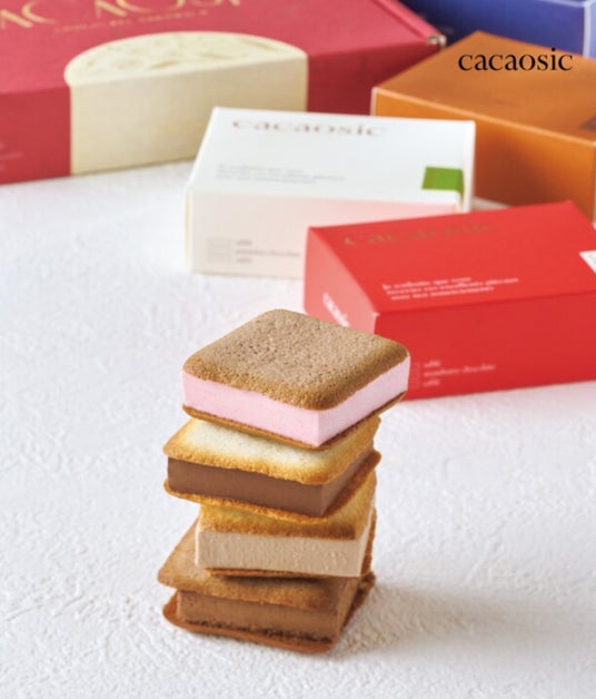 暑さ10mmのチョコレートをサクサクのラングドシャでサンドしたボリューム満点のチョコサンド。ピスタチオ、ストロベリー、秋冬限定のモンブラン、新登場のショコラオレ、4種の味が贅沢に楽しめます!