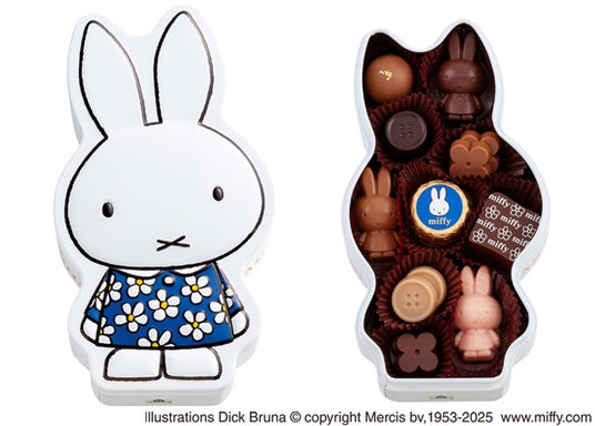 1.愛らしいミッフィーシルエットの立体缶に、ミッフィーデザインのチョコレートなどをアソート。