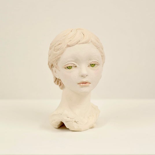 無機質でありながら艶めかしく、滑らかな陶の質感は、美しくも曖昧なその存在を浮き出させ、淡い着彩とあわせて、生命の本質的なフォルムを浮かび上がらせています。