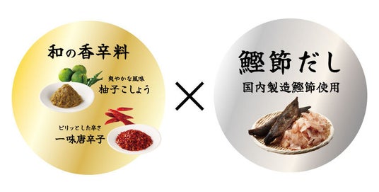 かつお節だしと相性がいい和の香辛料である柚子こしょうと一味唐辛子を使用。辛さの中に奥行きのある深い味わいに仕上げました。