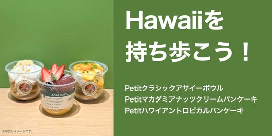 人気フードメニュー「クラシックアサイーボウル」、「マカダミアナッツクリームパンケーキ」、「ハワイアントロピカルパンケーキ」が手軽に持ち歩きでもお楽しみいただけます。