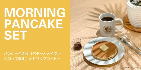 香ばしい生地のパンケーキとドリップコーヒーがセットになった平日限定モーニングメニュー。