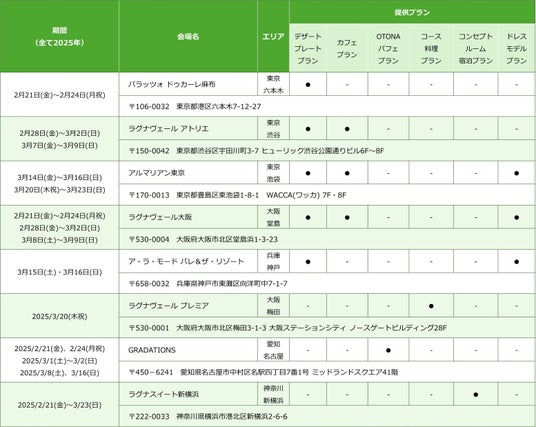 ※ 会場によりプラン・日程・時間が異なります。詳細は公式ホームページにてご確認ください。