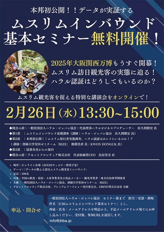 【無料】2/26 本邦初公開!データが実証するムスリムインバウンド 基本セミナーのご案内