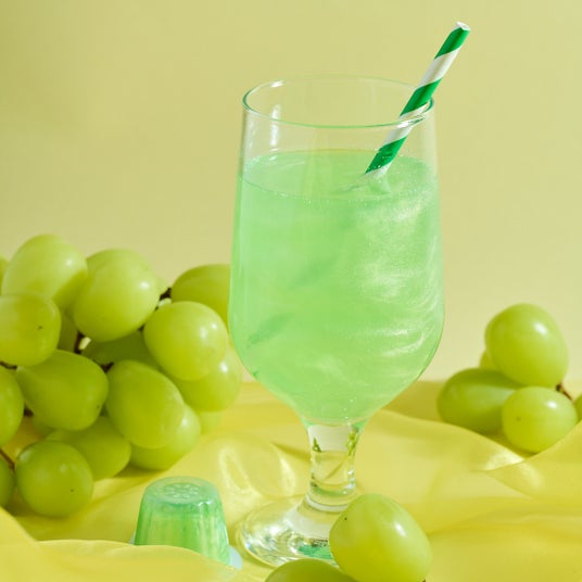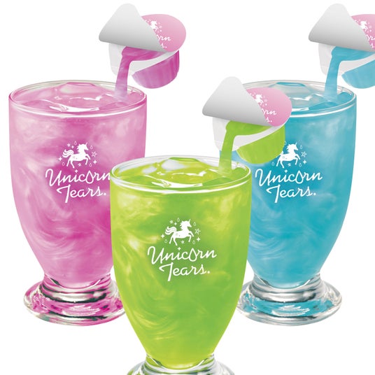 市販のサイダーに「ユニコーンの涙」をゆっくり注ぎ、やさしくかき混ぜるだけでキラキラ輝くオーロラドリンクが完成します。パーティー映え、SNS映えするドリンクは気分が上がること間違いなし!