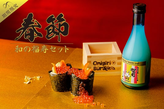 OnigiriBurger 関西国際空港本店では、旧正月のお祝いにふさわしい特別メニューとして、『春節・和の福寿セット~いくらサーモンと純米吟醸 にごり酒』をご用意しました。