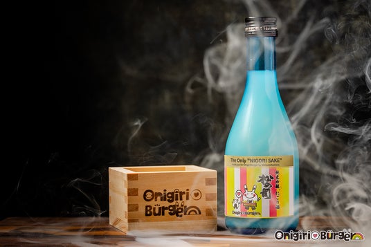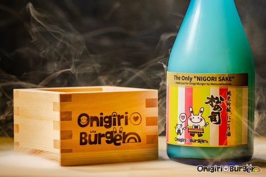 OnigiriBurgerオリジナル『松の司 純米吟醸 にごり酒』は、OnigiriBurgerのロゴが入ったオリジナルデザインの「升」とセットで提供いたします。