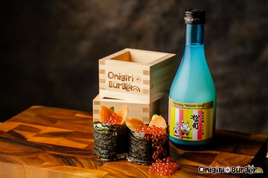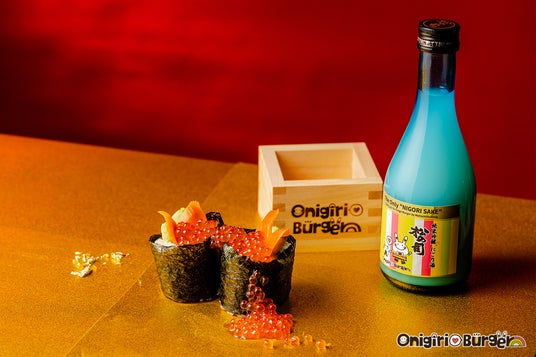 <春節祭>松の司と共演!おにぎりバーガーとペアリングを楽しむ『純米吟醸 にごり酒』、ひのき香る「升」、祝いの「いくら」で旧正月をおもてなし【OnigiriBurger関西国際空港本店】