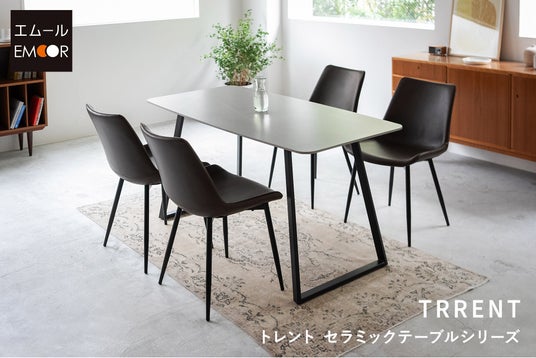 「身体に合った寝る・座る」を提供する健康家具ブランドEMOORを展開する株式会社エムール(東京都立川市:代表取締役 高橋 幸司)は、2025年1月27日より「TRRENT/トレント セラミックテーブルシリーズ(以下TRRENT)」の販売を開始しました。TRRENTは、上質な石目調デザインのセラミックテーブルを主役としたダイニングシリーズです。機能性と美しさを兼ね備え、ダイニング空間に高い実用性と高級感をもたらします。