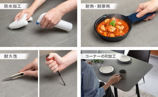 様々な耐久性があり、お手入れが簡単です。シックな色合いや上質な雰囲気が長く続く点も毎日使うダイニングにぴったりのメリットです。取り入れるだけで、暮らしの雰囲気や利便性をワンランクアップします。