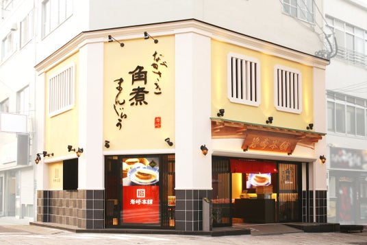 イラストの背景に描かれたお店は、実際に長崎にある岩崎本舗直営店。
