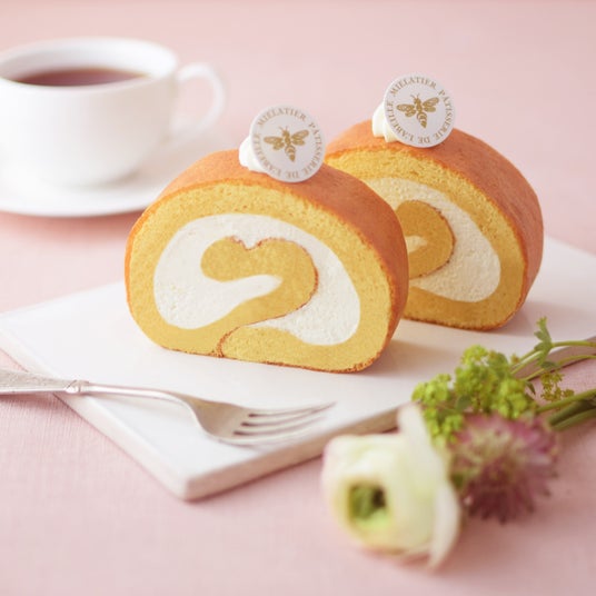 はちみつブランド ラベイユから誕生した世界初のはちみつパティスリー ミエラティエでは、砂糖を一切使用せずラベイユハニーを贅沢に使ってスイーツを作っています。はちみつ「フランス 春の花々」を使った春限定のロールケーキ「荻窪ロール プランタン」、いちごとマンゴーのフルーティーな甘みと爽やかな酸味が拡がる「ギモーブ ミエル」を2 月15 日(土)から発売いたします。