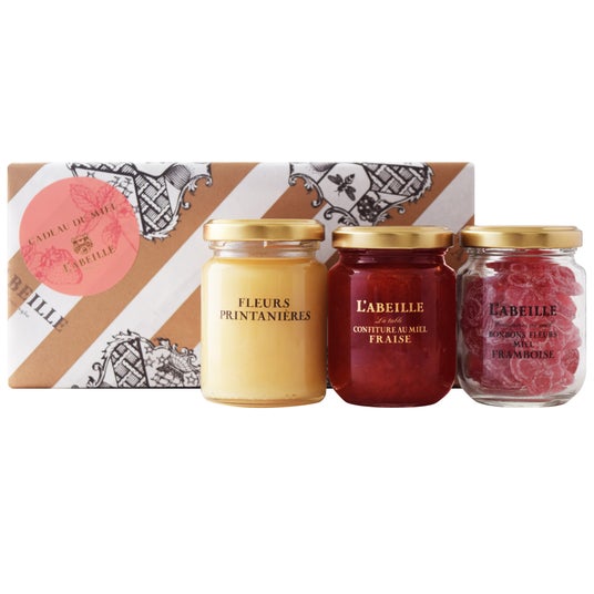 ■商品説明:季節限定のはちみつと春におすすめのコンフィチュール、キャンディをギフトボックスに詰め合わせました。春のギフトにおすすめです。