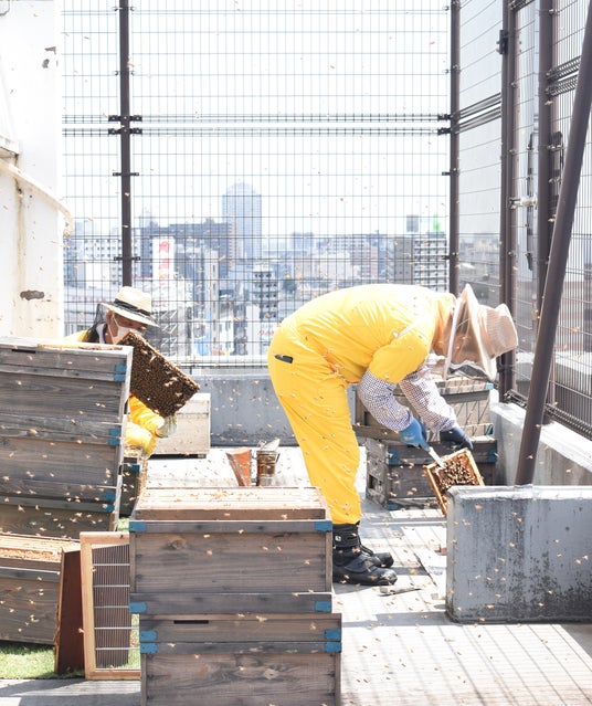 ラベイユは、都市と生き物の共生を目指すミツバチプロジェクトの主旨に賛同し、都市部で養蜂を行い、採れた蜂蜜をショップで販売しています。以下の店舗は、建物の屋上やテラス、近隣で養蜂を行っています。