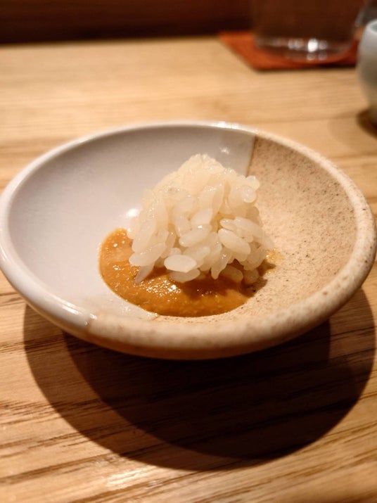 残ったあん肝醤油はシャリをいれてリゾット風に