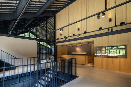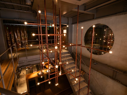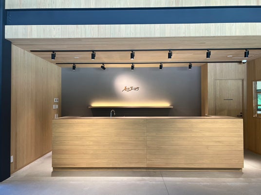 店内は「養父蒸溜所」のデザインをモチーフに木目調の羽目板やカウンター、ウイスキー蒸留器をイメージした金物のシャンデリアなどをあしらっております。カウンター席はオープンキッチンをL字で囲むように配置され、シェフが料理を仕上げる様子をライブ感たっぷりにお愉しみいただけます。
