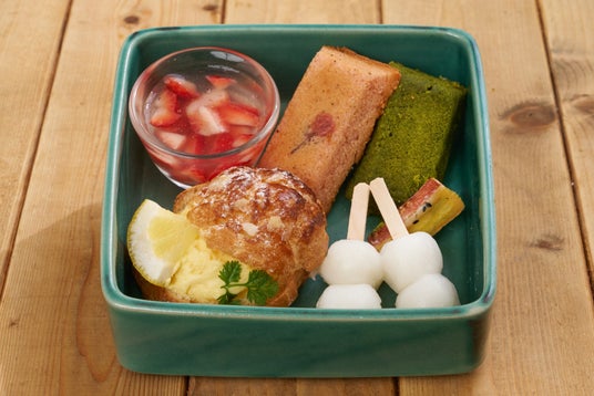 春夏コースに合わせて「桜のフィナンシェ」や「舞鶴抹茶フィナンシェ」、だんごをご用意しており、「舞鶴抹茶ムース」と「ヒラヤミルクの練乳」を付けることで、アレンジしながら味の変化をお楽しみいただけます。また、レモンのシュークリームはさっぱりとした甘さで、暑くなる時期にもピッタリのスイーツです。