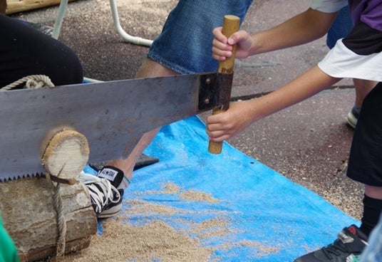 ・引きノコギリ体験(飛森谷戸の自然を守る会)