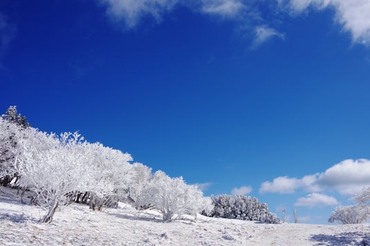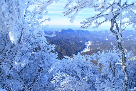 過冷却された霧粒が風で木などに吹き付けられ、その刺激で氷となって付いたものです。さまざまな気象条件が重なることでしか見ることができませんが、その姿は木に白い花が咲いたように見えます。日本三百名山の一つにもあげられる三峰山(みうねやま)では山頂付近で、12月~2月にかけてこの霧氷を見ることができます。また毎年1月から2月には麓で「霧氷まつり」が開催されます。その繊細で幻想的な光景を求めて全国各地から登山客が訪れ、一年を通して最も賑わいます。