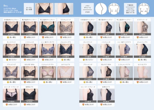 ブラジャーは体形や肉質が異なるとシルエットのイメージも変わります。ヘブンジャパンのカタログでは、体形が異なる4タイプの女性の着け比べ写真をアイテムごとに掲載。自分に近い体形の着用写真を参考にすることで、着用時のイメージを湧きやすくしています。