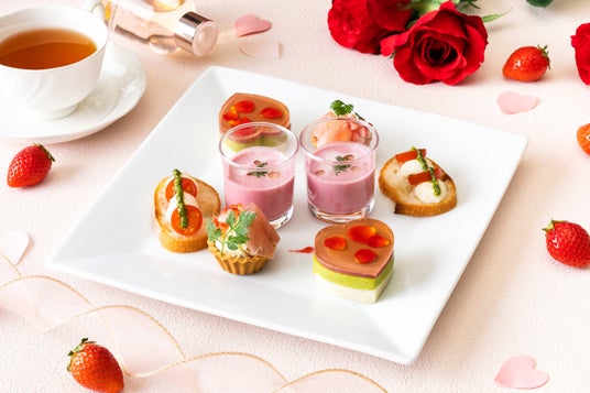 トマト香るベジタブルハートムース/ いちごと生ハムのクリームチーズタルト/