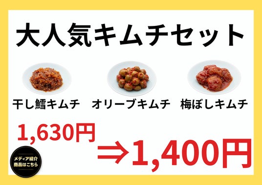 【紹介商品:ペチュキムチ、オリーブキムチ、梅ぼしキムチ】