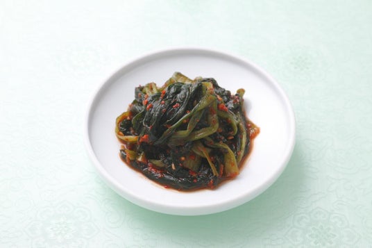 小松菜の風味を生かし、秘伝のヤンニョムで漬けた昔ながらのキムチ。