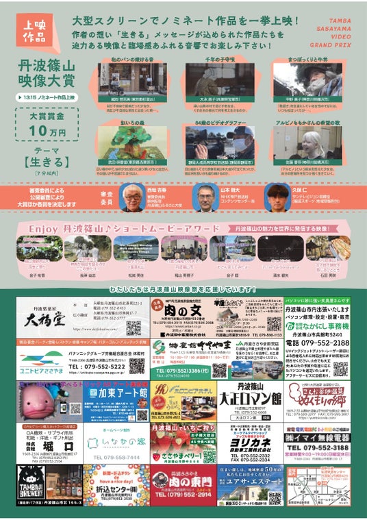 映像祭の中では全国から募集した「生きる」メッセージが込められた映像作品のコンテストである丹波篠山映像大賞の大賞作品も決定します。