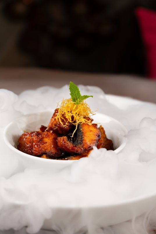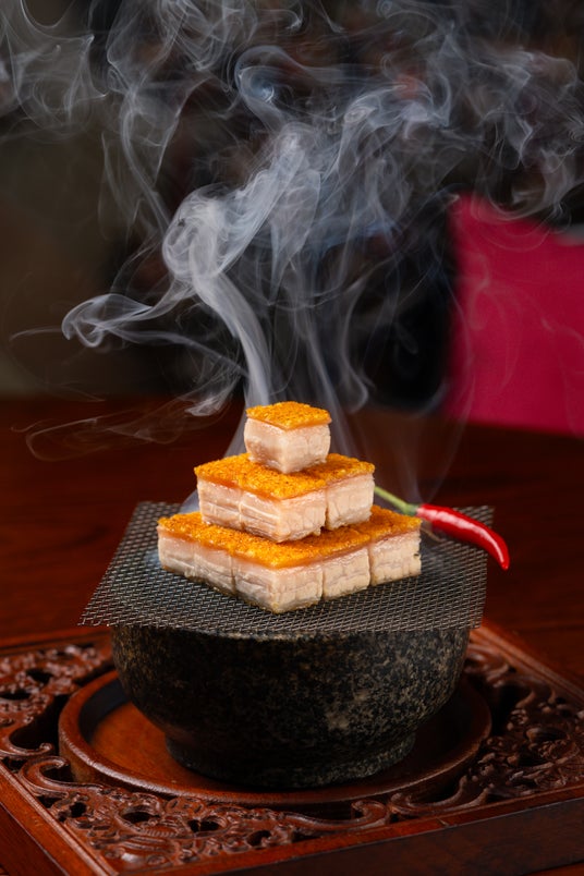 20年以上に渡り、受賞歴のある広東料理レストランで培った豊富な経験を持つホアン氏は、季節の食材をふんだんにつかった新鮮な美味しさが魅力の広東料理を提供しています。広東料理の定番メニューである「豚のクリスピー焼き」は、細心の注意を払いながら火を入れ、洗練された見た目と味わいに なるよう、3度に渡りナイフで余計な脂などを丁寧に取り除きます。カリカリとした食感と豚肉のジューシーな味わいが楽しめる、同レストランのシグネチャー料理です。