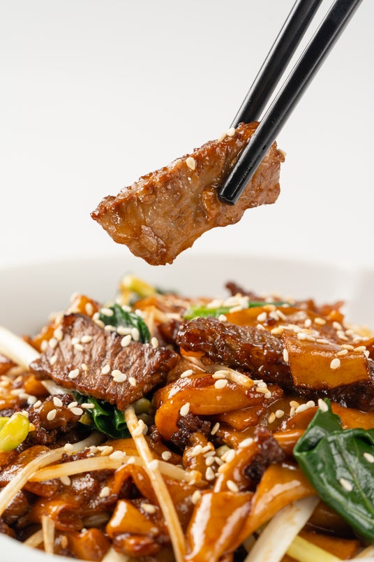 牛肉 もやし 黄ニラの 平打ちビーフン炒め