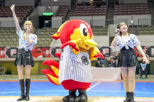 ヤマエグループ九州アジアリーグ所属のプロ野球独立球団「北九州下関フェニックス」の公式アイドルチアリーダー「FeatherBeats(フェザービーツ)」と公式マスコット「フェニーくん」に会場を盛り上げていただきました。