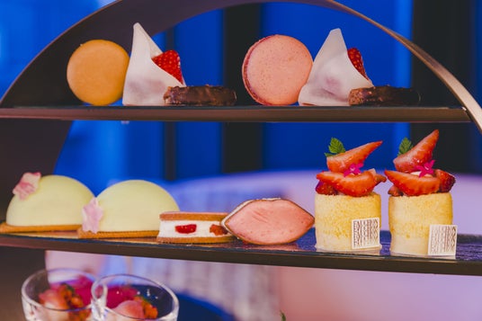 八ッ橋やわらび餅で織りなす雅なグルメ「京風コラボアフタヌーンティー」メインフルーツに大人気の「いちご」を用い、生八ッ橋イチゴ包みやイチゴとくずもち一の和風パフェ、桜咲く春の山を模した小倉山の春 イチゴ入り、ビズビズバターサンドイチゴなど、和菓子素材とフォションフレンチが見事にコラボレーションしたスイーツとセイボリーがスタンドに勢ぞろい。井筒八ッ橋本舗とフォションホテル京都だからこそ生まれる斬新で美味しいアフタヌーンティーをお届けいたします。