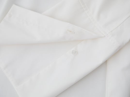 コットンの中でも最高ランクの"スーピマコットン"と、"フルダルポリエステル"の混紡糸を、ハリ感のあるブロードクロスに織り上げた生地を使用しています。