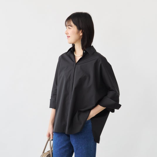 ゆったりとした着心地と、体型カバー効果の一石二鳥なオーバーサイズのブラウスは、大人女性の味方とも言えるアイテム。