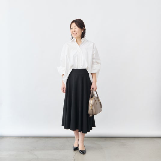 フレアスカートだけでなく、細身のスカートともよく合いそうです。