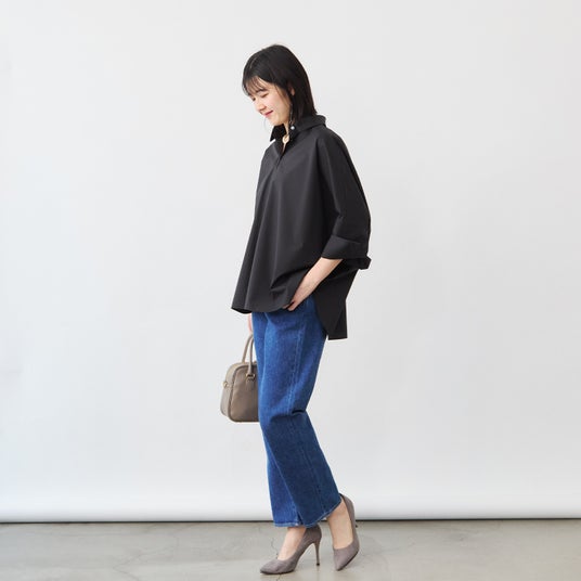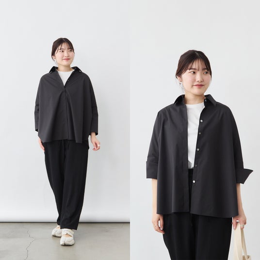 そんなオーバーサイズのブラウスを、上品にかっこよく着られるようにデザインしました。