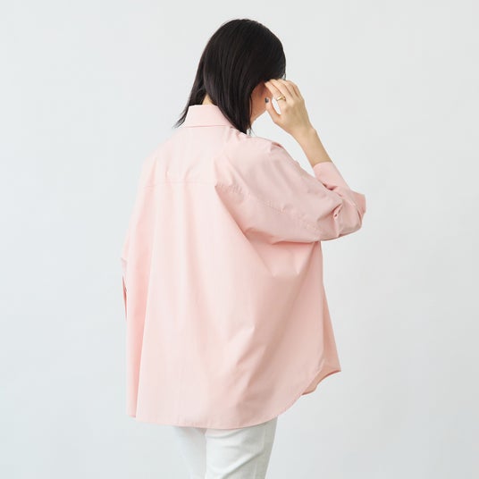 パリッとしたブロード生地はさわやかで清潔感のある印象を与えてくれますが、着心地はとても軽くてしなやか。
