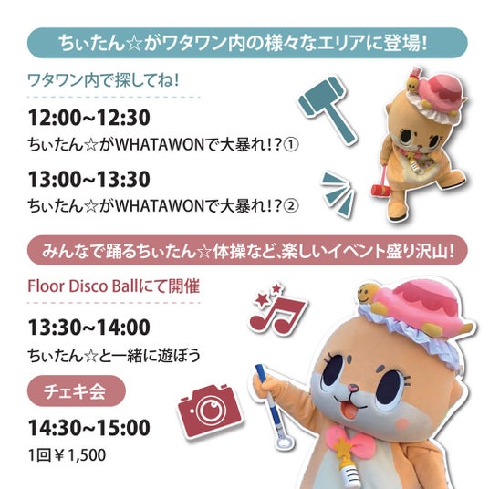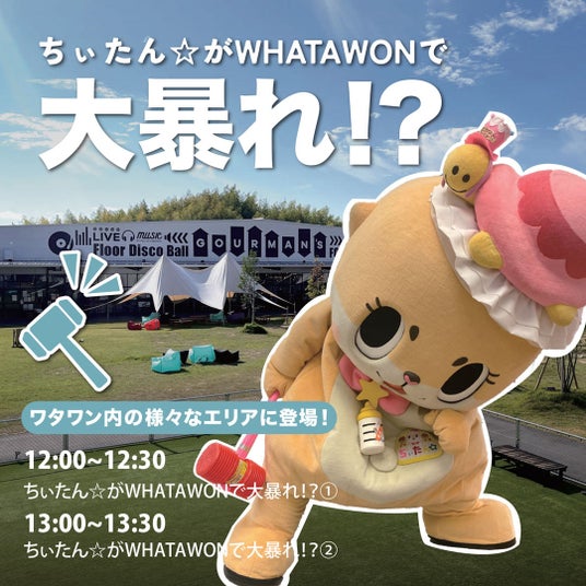 SNSで噂の「ちぃたん☆」が南大阪のエンターテインメントモール「WHATAWON(ワタワン)」にやってきます!さまざまなエリアで愛嬌たっぷりの破天荒な姿を披露予定です!
