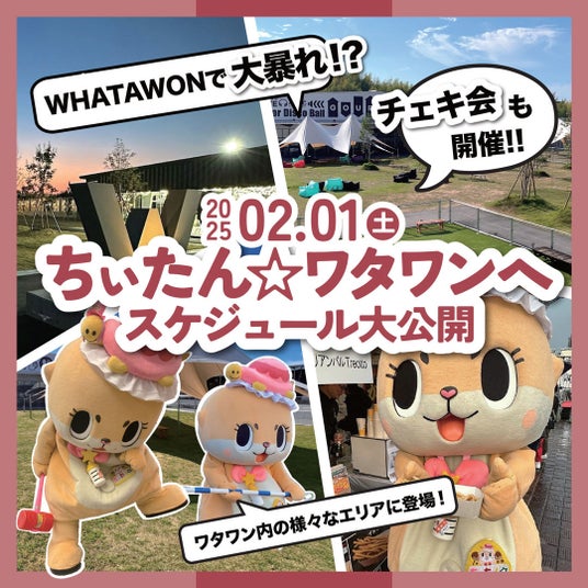 2025年2月1日(土)、株式会社antiqua(本社:大阪府和泉市)が手がける南大阪のエンターテインメントモール「WHATAWON(ワタワン)」に、SNSで話題の『ちぃたん☆』が初登場!当日は「みんなで踊るちぃたん☆体操」や「チェキ会」など、来場者の皆さまと一緒に楽しめるコンテンツが盛りだくさんです。さらに、ワタワン公式アンバサダーの「ウーちゃん」も登場するカワウソフェスも同時開催!かわいいカワウソたちと一緒に楽しめる特別な一日を、ぜひお見逃しなく!