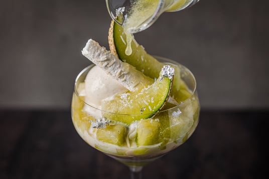 ココナッツを織り込んだメレンゲ、濃厚なバニラアイスと十勝宮地牧場直送のフレッシュなフロマージュブランは、メロンと日本酒をふくよかに引き立てます。