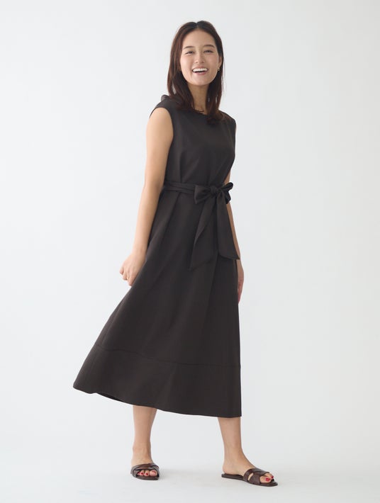 ストレッチの効いた、肌当たりのなめらかな生地とストンと落ち感のあるシンプルシルエットは、ストレスフリーの着心地。