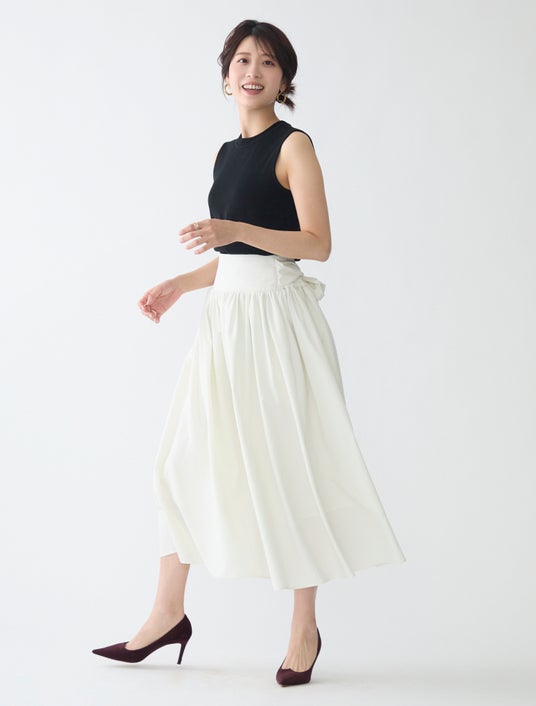2way ribbon grosgrain tops ¥23,100 / Bouquet grosgrain circular skirt ¥26,400