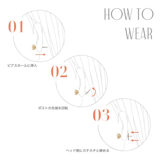 ポスト部分(耳に挿し込む部分)には金属アレルギー反応が出にくい医療用ステンレスを採用。錆びにくいコーティングを施しておりプールや海など様々なシーンで着用が可能です。