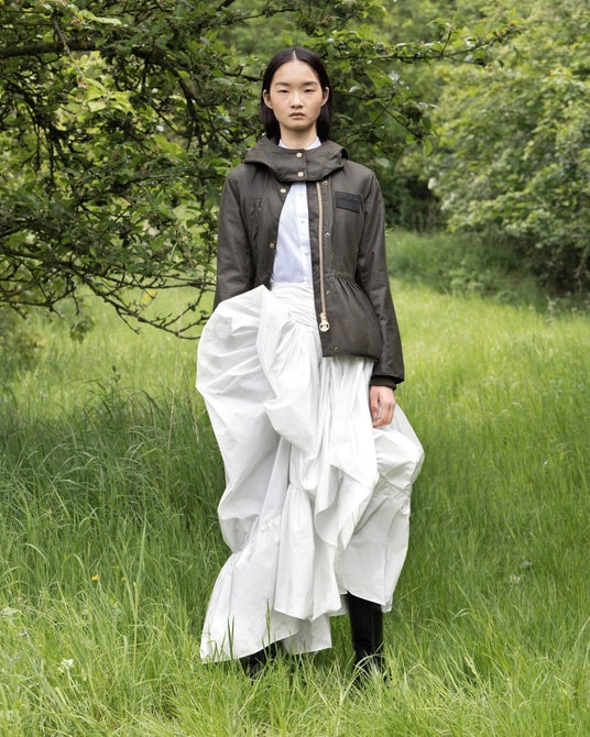 本コレクションは、アーデムの詩的で現代的な女性らしさと、バブアーの伝統的で実用的なワックスコットンを融合させ、アーデムならではの女性らしいシルエットや細やかな仕立てに加え、自然からインスピレーションを得た華やかなアウターウェアが誕生しました。